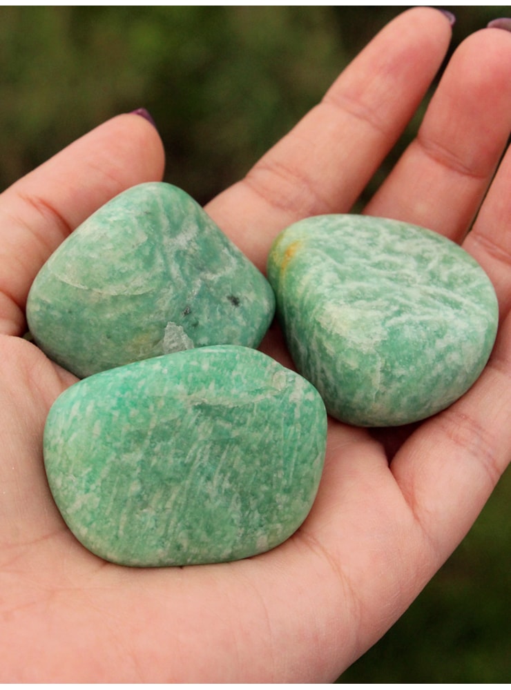 A amazonita é uma pedra verde-azulada frequentemente associada à coragem e à verdade. Esta pedra é conhecida por suas propriedades que promovem a comunicação clara e a expressão pessoal, ajudando a dissipar o medo e a ansiedade. A amazonita é frequentemente usada para equilibrar as energias e promover a paz interior. Em joias, sua cor suave e suas propriedades calmantes fazem dela uma escolha popular para colares e pulseiras.